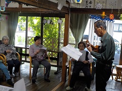 本日も恒例、一人楽団のボランティアさんが来所されました^^