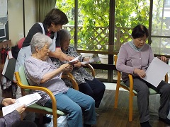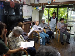 歌本とウクレレの心地良いメロディーに乗せて歌います