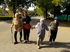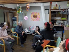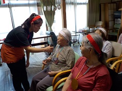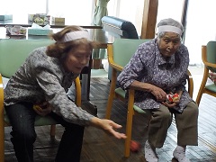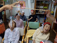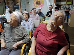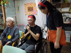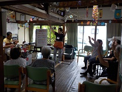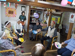 歌や体操、様々なレクレーションを一緒に行い