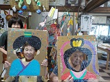 皆も一緒に笠を持って見よう見真似で踊っております^^