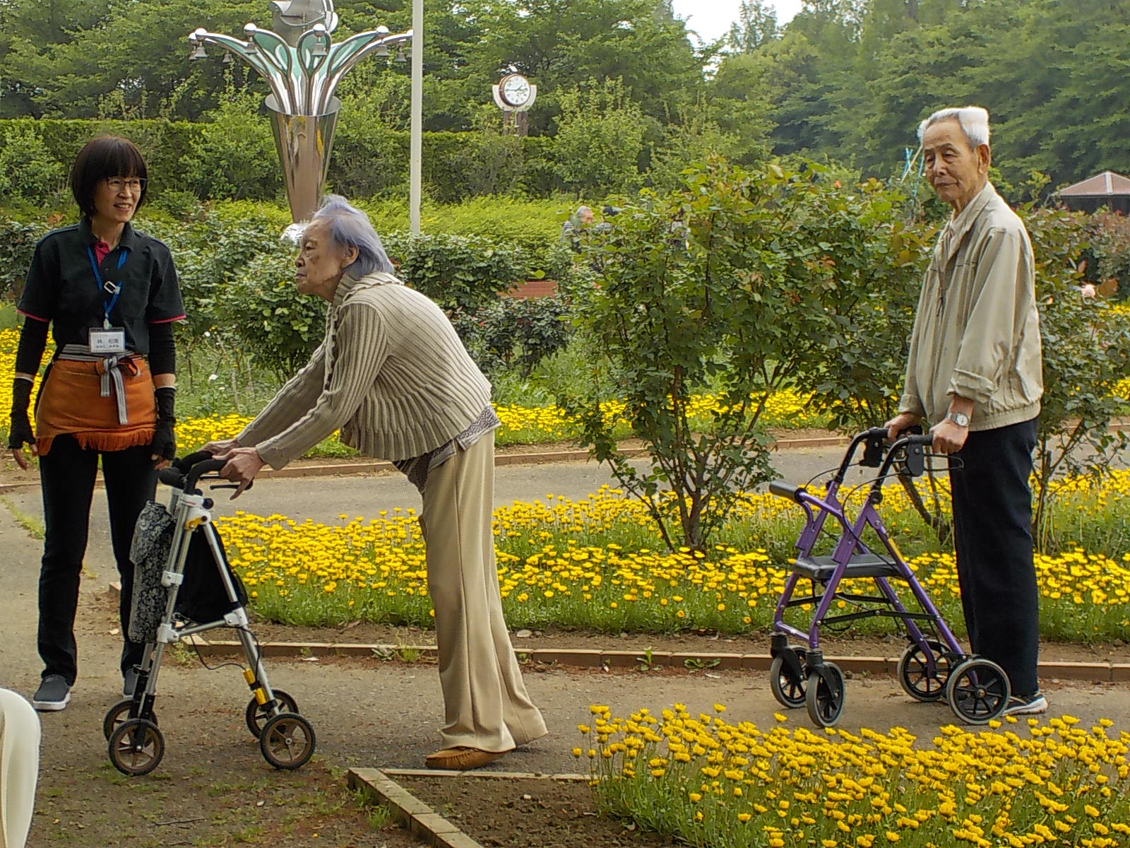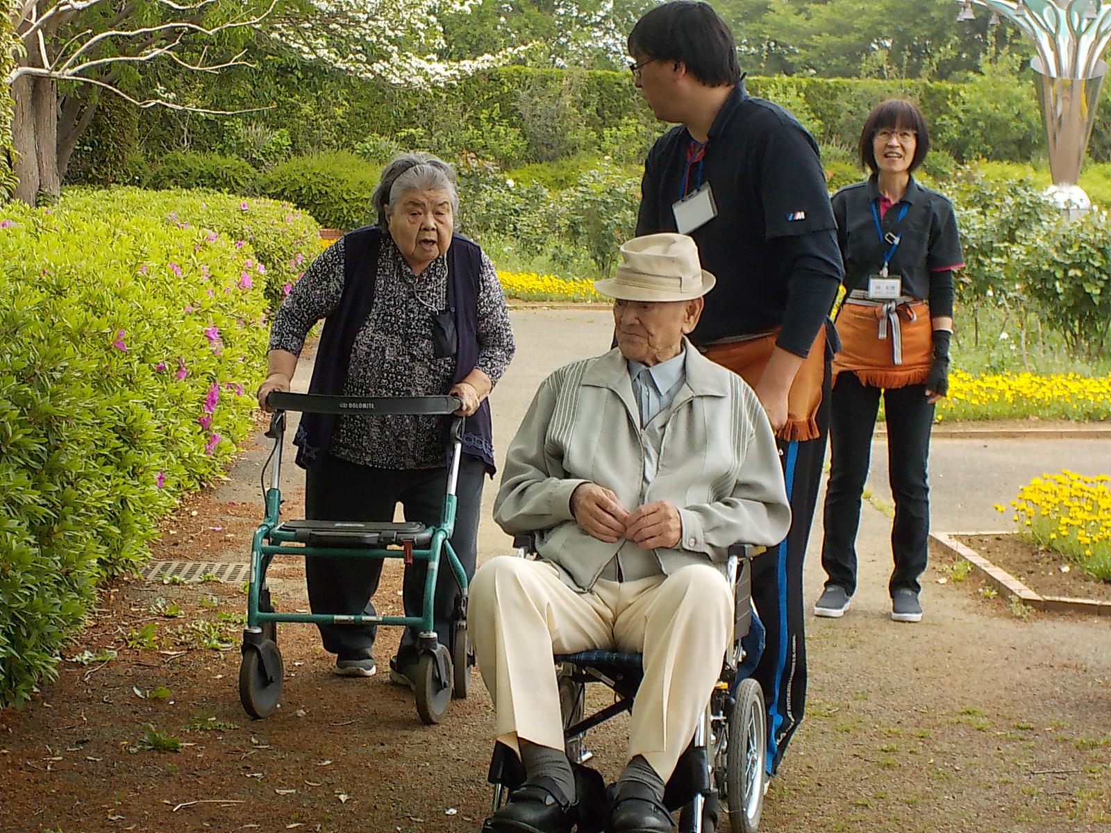 お花を見ながらお散歩を楽しんで