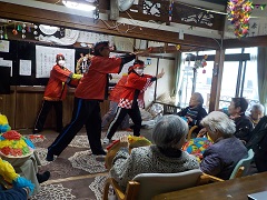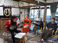沖縄三味線を演奏して一緒に歌ったり