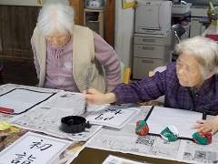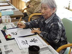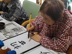 新年を迎え、本日は書初めを皆様で行いました^^