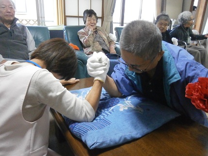 なんと、なんと利用者様と職員でガチの腕相撲対決!をしました。