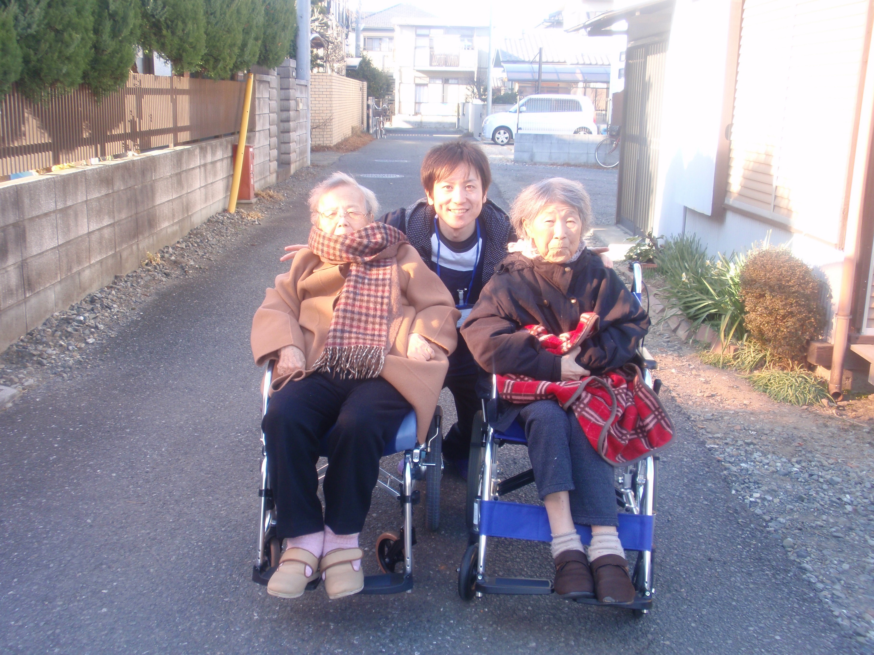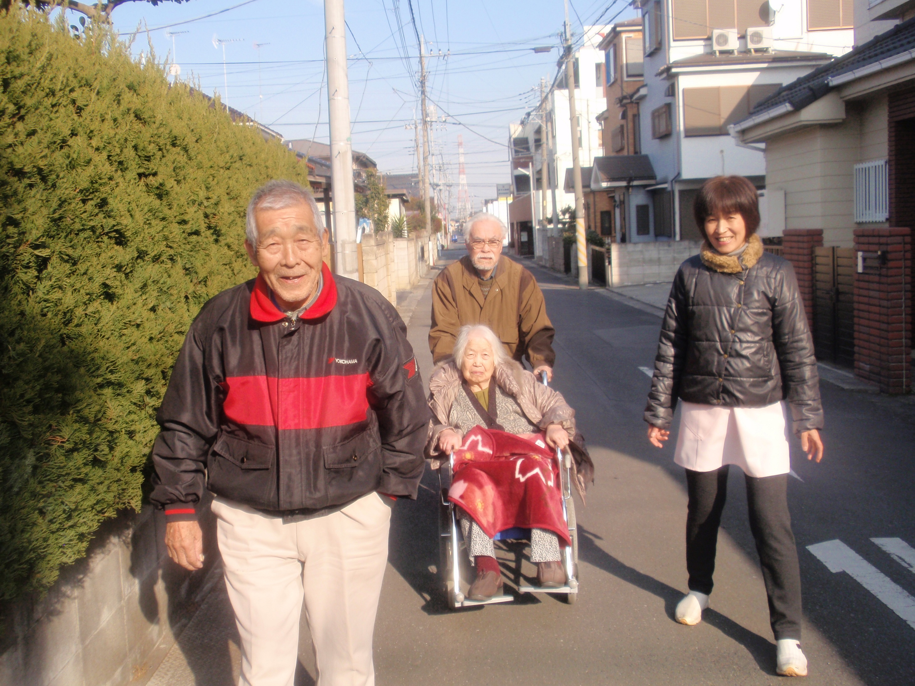 午後の散歩と、レクレーション、外出を中心として皆さんと