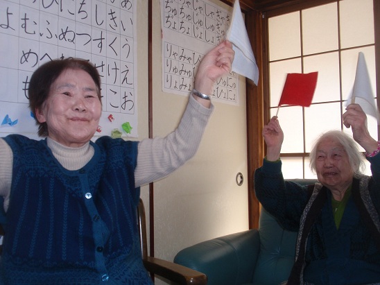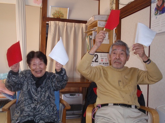 ゲームの定番といえばやっぱり!?ということで今日は皆様と一緒に 赤・白旗上げゲームをしました。