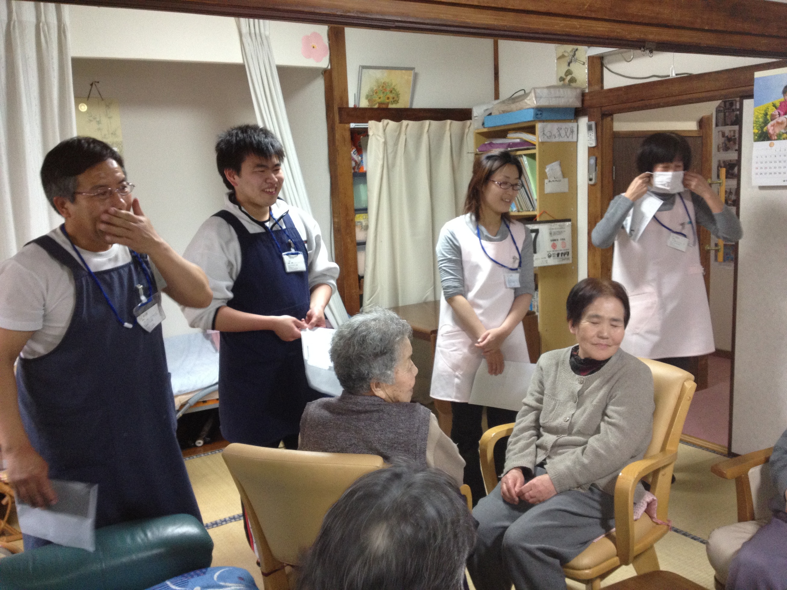 職員からは歌のプレゼント、みんなで合唱し、一体となったハーモニーが
