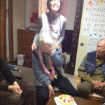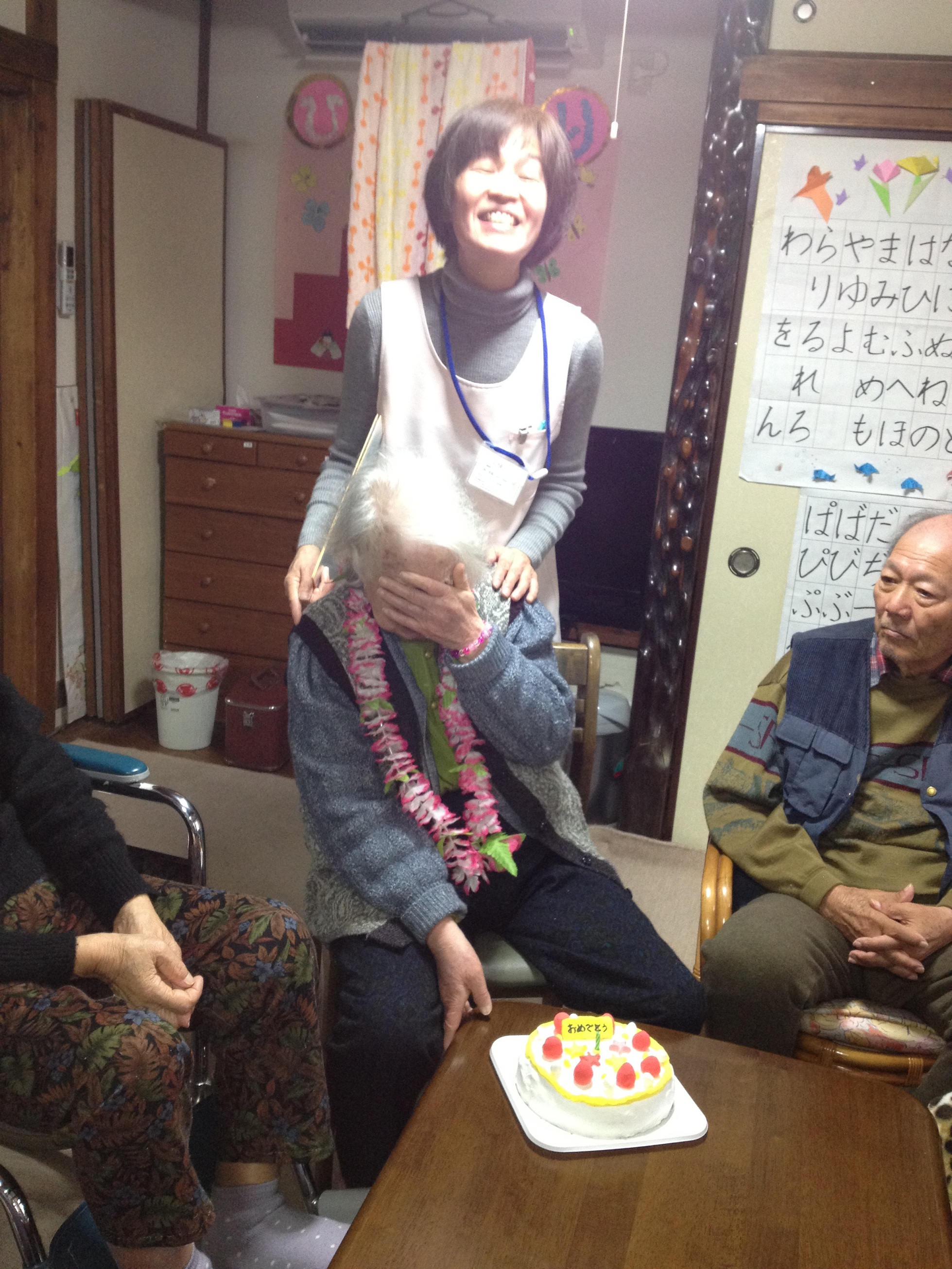 みんなで『ハッピーバースデートゥーユー』を歌い、職員からお祝い
