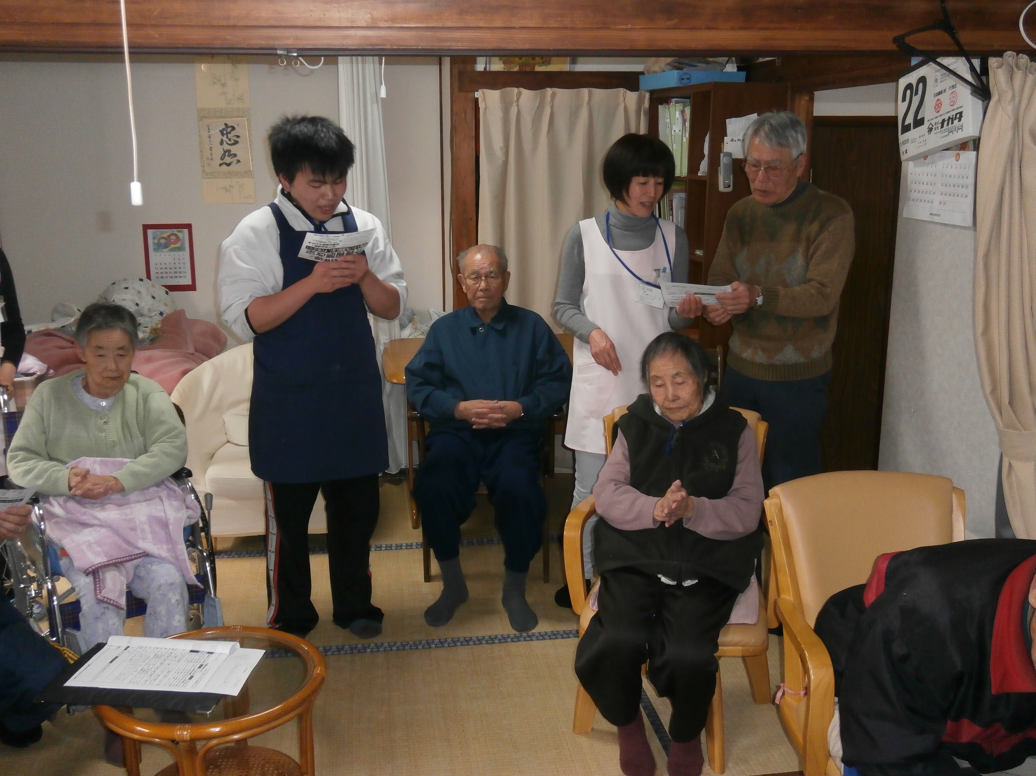 デイサービスに来れなくなるため、みんなでお父さんの壮行会を