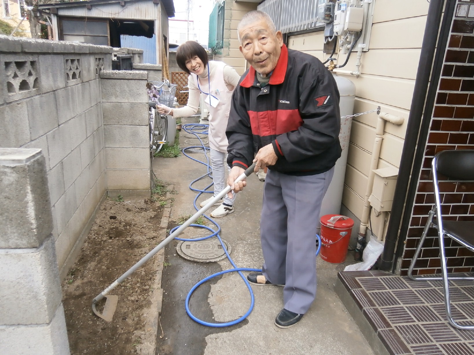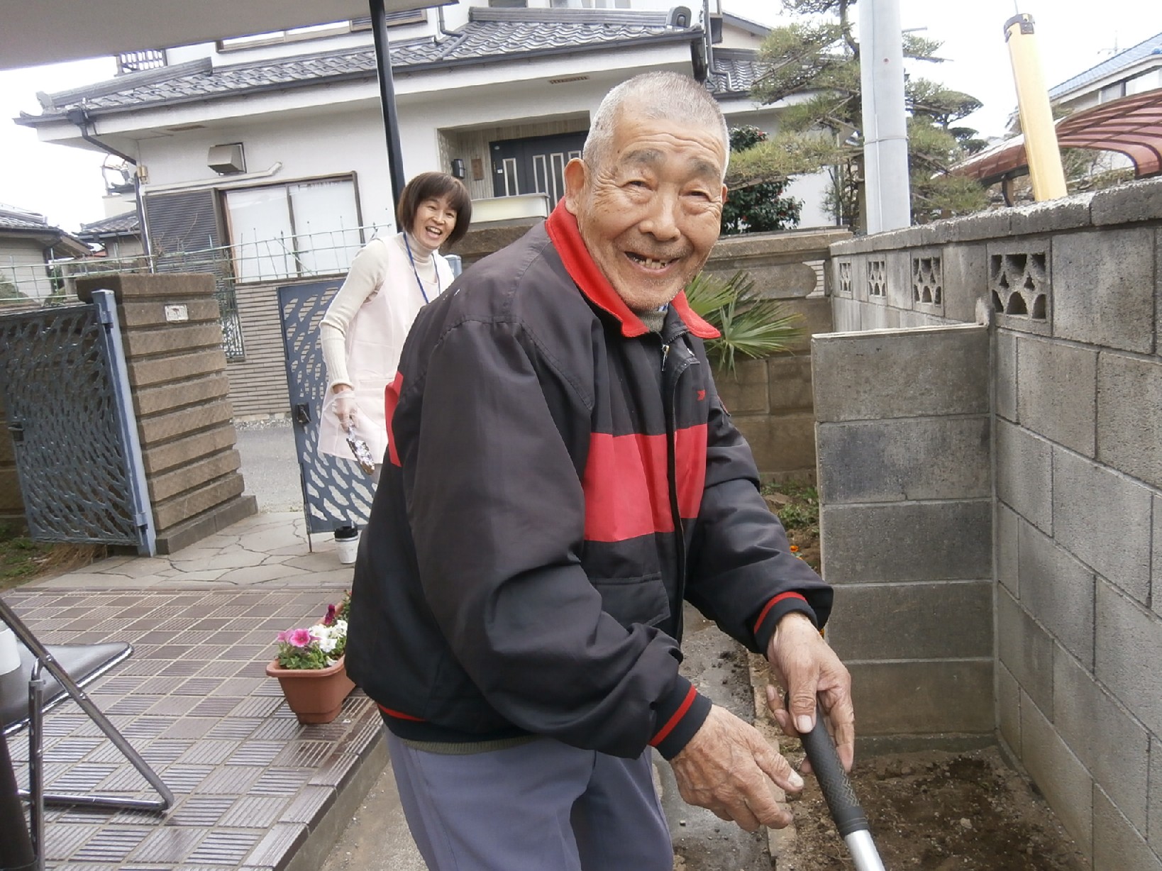 身体を動かすことが好きな男性の利用者様が、「えっさ、 ほいさ」と頑張って、土を耕してくださいます。
