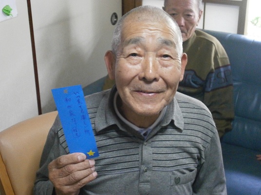 織姫様に彦星様、天の川があって、その周りに利用者様の短冊を貼り付けて♪