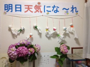 そして、明日天気になるように、皆さんで玄関に梅雨の時期、恒例の