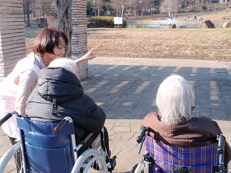 今日は、いいお天気でしたので利用者様と桶川市にある城山公園に行きました。
