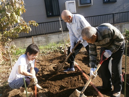利用者様が農家出身の方が多いからか、みんな菜園にとても興味を持ってくださいます。