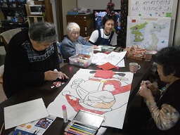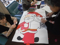 ために、せっせとクリスマスの貼り絵を頑張っておられます☆