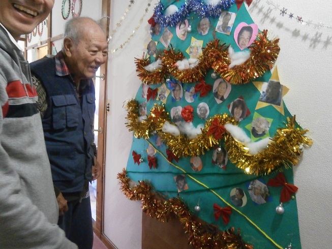 利用者様のいい表情が飾りに扮して、最高のツリーが完成しました!