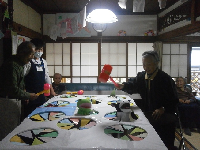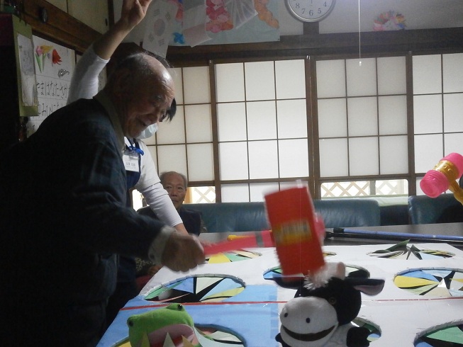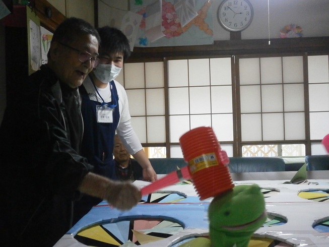 この日はスタッフが作ったもぐらたたきゲームに挑戦♪