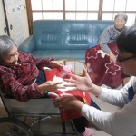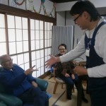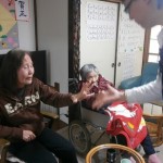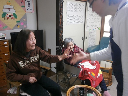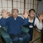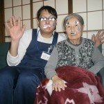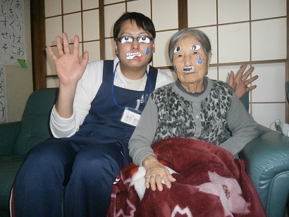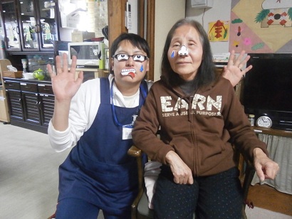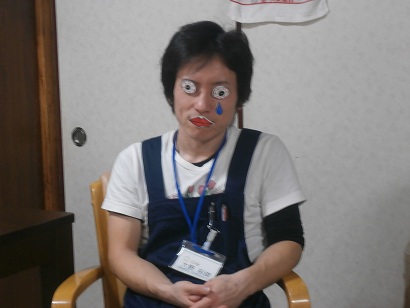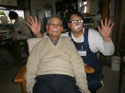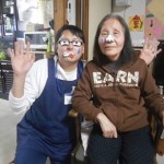 ジャンケンで負けたら、好きな顔のパーツを貼るという人間福笑いです♪