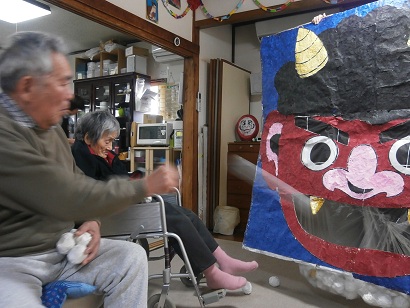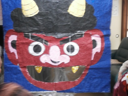 和が家では昨年作成した鬼の貼り絵を使って、今年も豆まきをしました♪