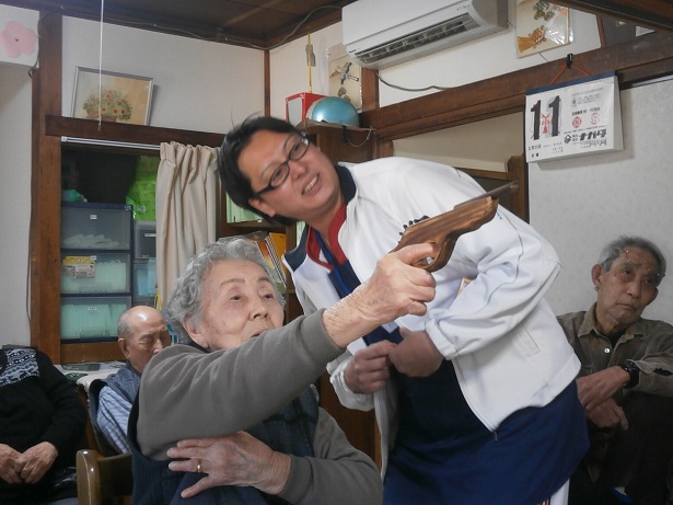 何やら鉄砲のような物を構えておりますが、もうお分かりの