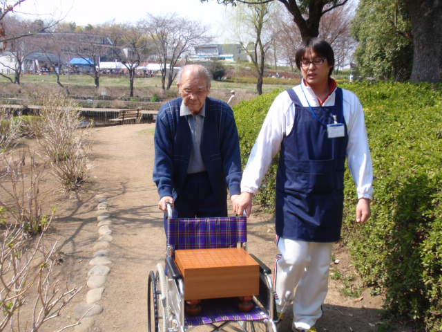 そこで、男性の利用者様が将棋が好きなので、 将棋盤を公園に持参するというワザを使い、外の 空気を吸いながら、きもちよーく将棋を打っても らいました☆