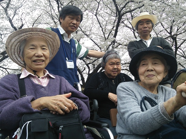 満開の桜を楽しみましたよ~!風で桜吹雪も見れて皆さん一同に