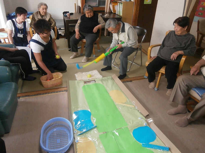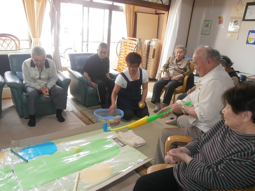 和が家に戻り・・・和が家手作りの「きな粉&抹茶のくずもち」を召し上がられました。「美味しい」「また、食べたいな」等大好評です(^^♪休憩をとッた後は、新ゲームの「パターゴルフ」をしました。