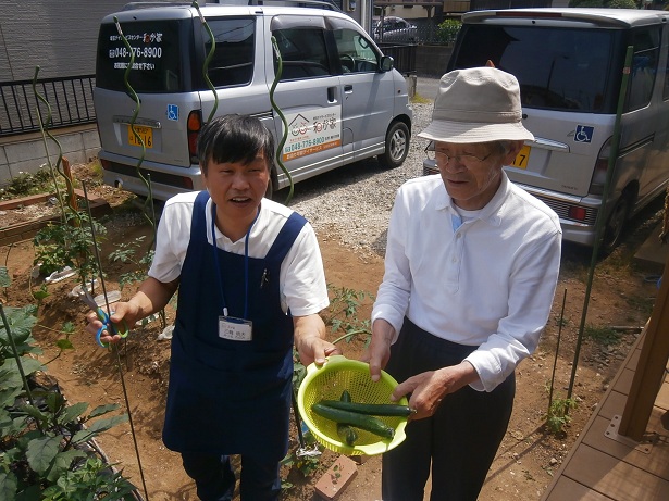 こんなに立派なキュウリが利用者様と一緒に収穫できましたよ♪