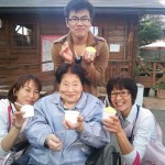 ソフトクリームを食べてニッコリ!!こちらの表情です♤