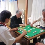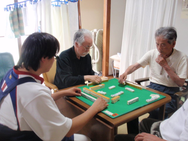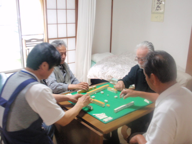 最近、男性の利用者様も増えてきまして、麻雀がお好きな 方も多くいらっしゃるので、麻雀の日を設けてます。