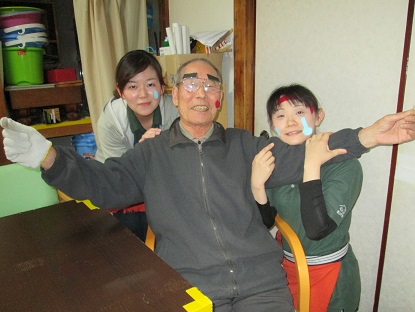 本日は、午後にジャンケン福笑いを行いましたヽ(^。^)ノ 皆様とても、真剣に参加されていました(^^)ジャンケンの掛け声が始まると大きな声で雰囲気が盛り上がり勝敗が決まると「わー勝った!!」 『悔しい」など盛り上がりは最高潮に(;O;)皆様の元気に感動しました(;_:) ジャンケンに負けると顔に顔の特殊パーツを貼りゲームの終わりに記念撮影を撮りました\(◎o◎)/! 皆様、とても楽しまれていてとても良い雰囲気でした(*^_^*)