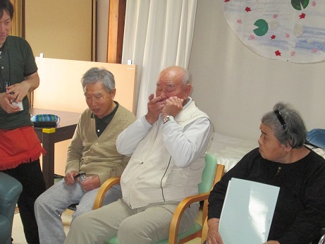 最後は、利用者様のハーモニカのお返し演奏を♪