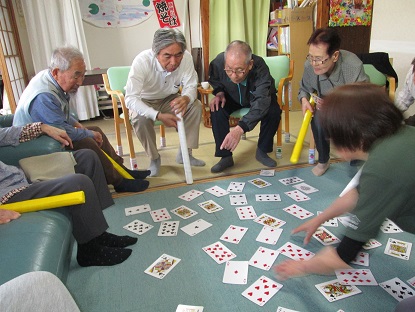 本日は、室内にて皆様と一緒に色々な活動を行いました(^^) 初めに、百人一首のカードを使った「坊主めくり」やボールを使った運動などの活動を行いました(*^_^*) 皆様、とても、良く発言して下さったり、とても良い表情をされていました(*^_^*) おやつ後には、木琴演奏会を行いました(^^♪木琴のとても心地の良い音に癒されながら皆様と歌い、心癒される時間を送ることが出来ました\(◎o◎)/! とても、楽しい雰囲気が溢れている一日でした(*^_^*)