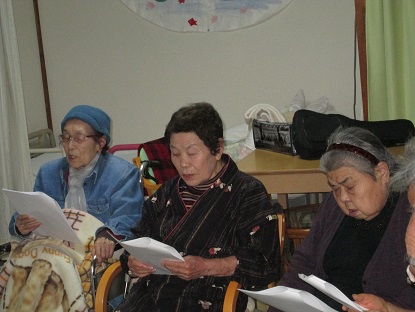 ウクレレの珍しい音色を聴くと表情が真剣になり皆様が、とても楽しそうに歌われていました(゜_゜>)ボランティアさんありがとうございました(‘;’)