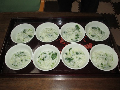 皆様、召し上がられると「美味しい!!七草の香りと薄い塩味がとても美味しい」よと喜んで食べて下さいました(*^_^*)