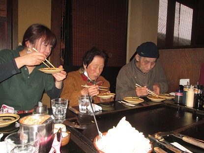 皆さん、焼いてるときの目がとても真剣です(^^)「ジュージュー」っという焼き音を聞くと、利用者様から「良い音だねー、うまそー」と食べたい気持ちを更にひきたてます(*_*・・