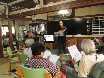 ウクレレの楽器に合わせ利用者様・職員皆で楽しく歌い盛り上がりましたよヽ(^。^)ノ