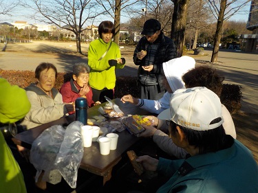 ベンチに座り楽しい会話もしながら、おやつも召し上がられましたよ(^○^)