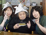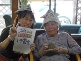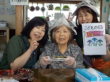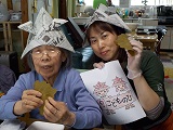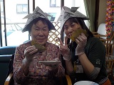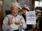 作った兜と一緒に記念撮影です♪